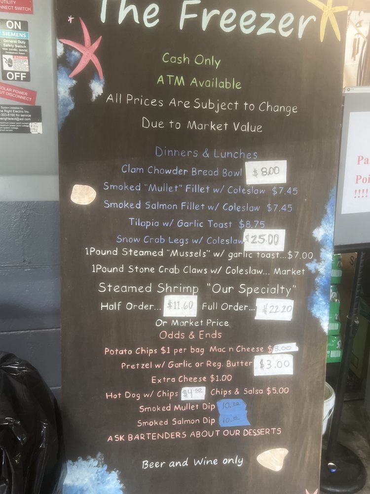 Welcome to The Freezer Tiki Bar, a seafood spot located in Homosassa, FL. This unique tiki bar offers a variety of seafood dishes that are to die for, with a focus on peel and eat shrimp. The ambiance is casual and lively, perfect for a fun night out. The converted fish freezer turned dining spot adds to the charm of this establishment. Customers rave about the fresh seafood, affordable prices, and friendly service. The menu may be limited, but the quality of the dishes makes up for it. With outdoor seating, pool tables, and happy hour specials, The Freezer Tiki Bar is a must-visit for seafood lovers looking for a laid-back dining experience. Don't forget to bring cash as credit cards are not accepted. Enjoy the relaxed atmosphere and delicious seafood at The Freezer Tiki Bar!
